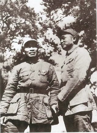 圖7 八路軍總司令朱德(左)、副總司令彭德懷(右)在山西武鄉縣八路軍總部駐地。