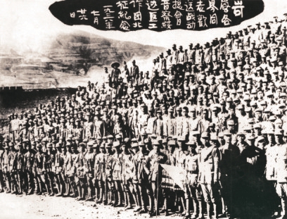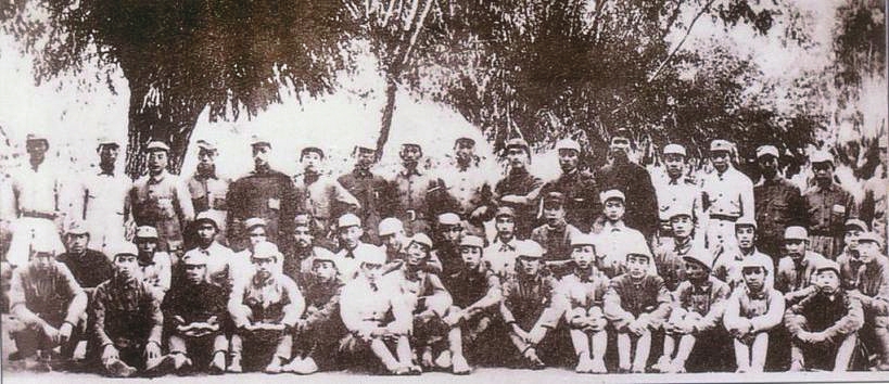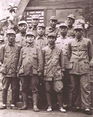 圖10 1938年1月,八路軍第一一五師主力開辟晉西南抗日根據地。圖為羅榮桓(二排左三)、楊尚昆(二排左二)等在孝義。