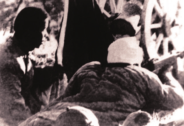 晉綏邊區民兵英雄張初元組織民兵“勞武結合”,戰斗、生產兩不誤,延安《解放日報》稱贊張初元是“勞力與武力結合的范例”。圖為張初元用自制的榆木炮襲擊敵人。