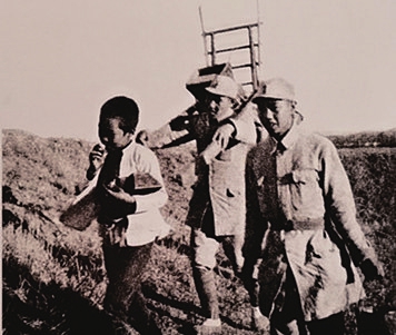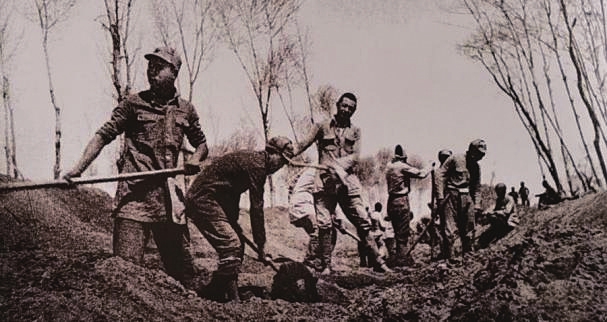 八路軍戰士幫助群眾修整土地,發展農業生產。