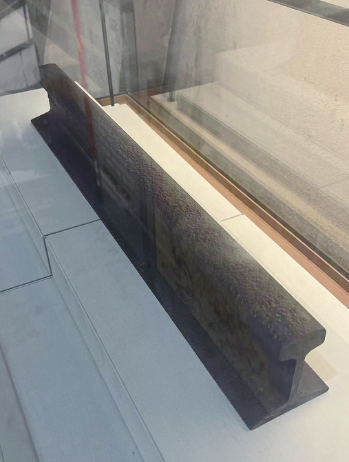 圖為百團大戰紀念館內,展示的一段斑駁的鐵軌。
