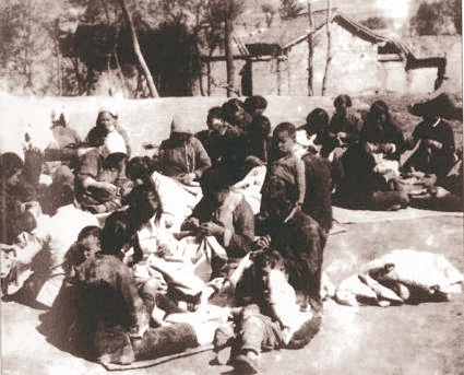 根據地人民趕制被服。