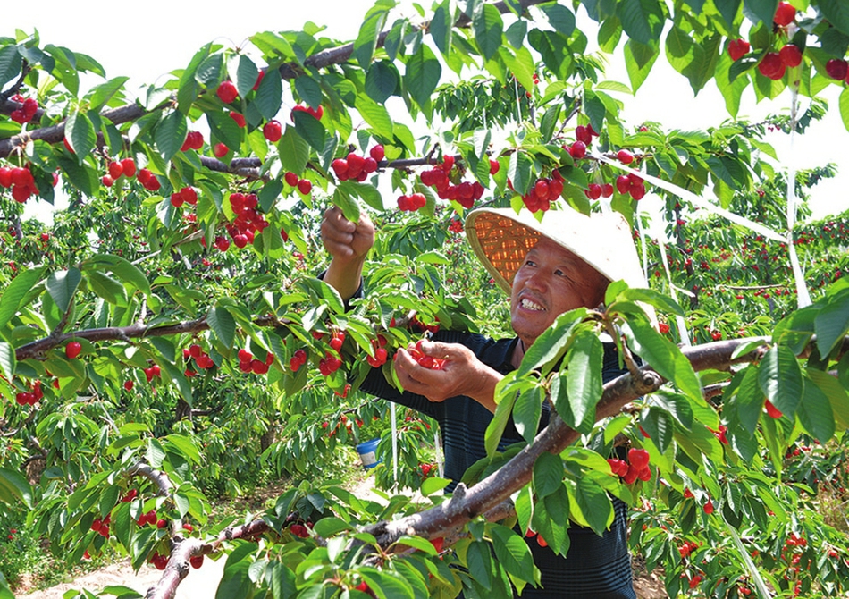 夾馬口灌區受益區群眾在採摘櫻桃。賈進杰攝