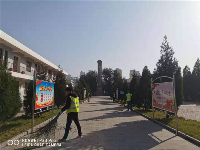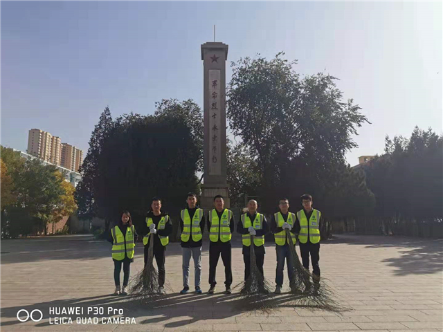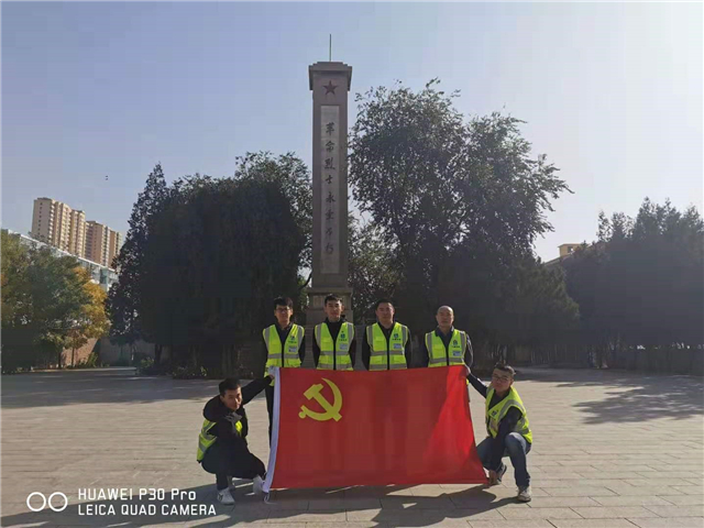 寂静肃穆的纪念馆内,着装统一、佩戴党徽的党员各自分工,认真的清扫落叶、擦拭栏杆、捡拾垃圾,心中充满对烈士的敬仰,这一刻,为这样的盛世中国而自豪。同时,在项目老党员带领下了解了纪念馆党史故事,领会并学习了《党史》、《习近平关于“不忘初心、牢记使命”论述摘编》部分篇章内容,感悟新时代中国共产党的历史使命,在红色基地行动中认认真真悟真理。