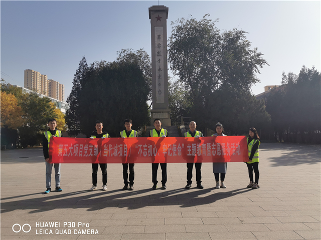 10月30日,中建一局北京公司当代城项目全体党员走进太原市革命烈士纪念馆,开展关于“不忘初心、牢记使命”主题教育学习暨志愿服务活动,以一场沉浸式教育学习、一次义务志愿活动缅怀革命烈士的英雄事迹,继承先列遗志,锤炼当代青年党员担当精神,不断增强守初心、担使命的思想和行动自觉。