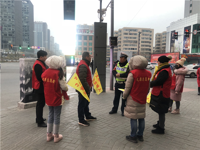 为提升市民文明出行意识,优化城市环境,助力太原创建文明城市,大力弘扬志愿服务精神,11月25日至11月29日,太原市财贸学校白雪松老师带队,带领齐欣、王利利等几位老师在亲贤北街与长治路交叉口开展了“文明交通、安全出行”志愿服务活动。