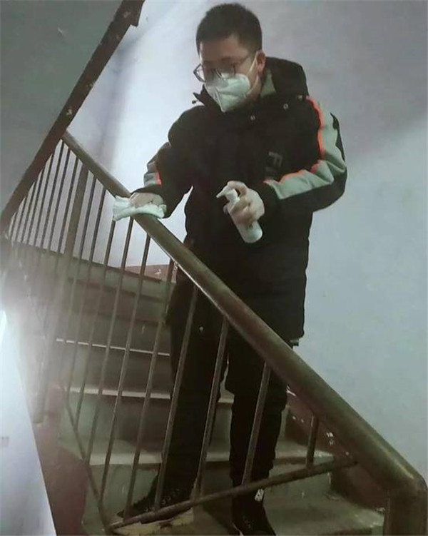 杨泽加,2019级工商管理学院工商管理二班学生,来自河北省秦皇岛市青龙满族自治县。作为一名大学生,他也在尽自己的努力,为疫情防护多做一份贡献。在他的家乡,疫情算不上严重,但县里的大街小巷,都在努力预防着。当他听闻小区里要挑选志愿者来进行消毒,作为一名大学生,理应承担起这份责任。他主动参加到志愿者的队伍当中,经过全副武装后,拿起了喷雾器去为楼道里的角落消毒,拿起了消毒抹布让每个开关和扶手预防病毒。也许这只是每天的点滴付出,但他知道,这是为了小区里的每一家的幸福健康。疫情当前,生活向前,为了方便更多的住户,他也帮忙分发了小区居民通行证和车辆通行证,为整个小区的防护尽自己的贡献!