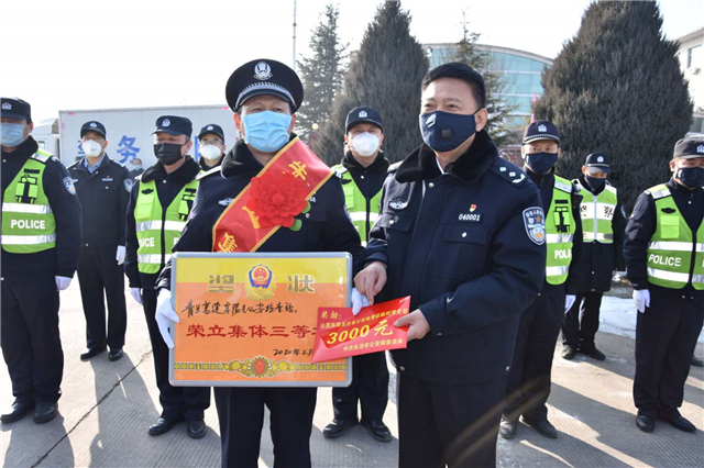 长治市副市长、市公安局局长成文碧给东阳关高等级公安检查站颁发三等功奖状