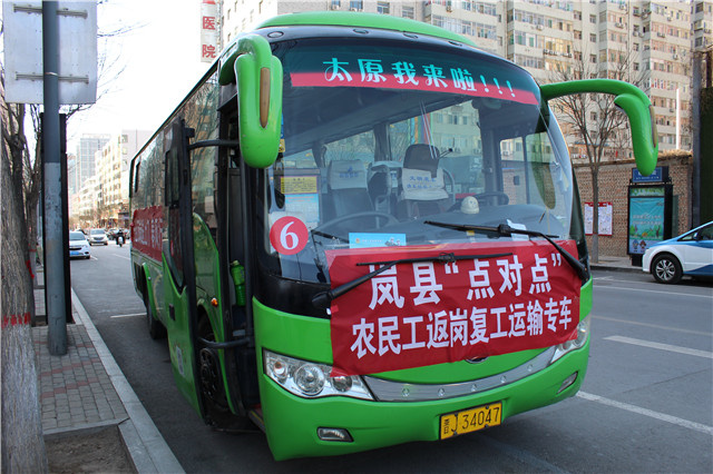 3月10日,一辆搭载返岗复工农民工的绿色大巴车驶离吕梁岚县人民广场,于下午两点到达省城红马甲集团股份有限公司,护送十余位农民工平安返回了自己的工作岗位。