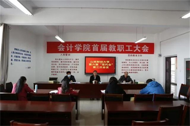 3月26日下午、27日上午,山西财经大学第六届教职工暨工会会员代表大会第三次会议胜利召开。在新冠肺炎疫情形势下,学校创新形式,采取分散与集中相结合的方式,分团分组式审议通过了校长工作报告、2019年预算执行情况和2020年预算草案报告、工会委员会工作报告和工会经费审查报告。