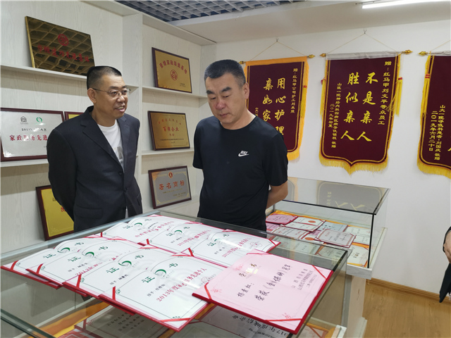 5月3日,忻州市宁武县就业局周俊青局长一行来到红马甲集团股份有限公司调研,参观了该公司的企业文化和标准化建设成果,并走进养老、母婴、保洁等实操室,对红马甲集团近年来在家政扶贫、全民技能提升工作取得的业绩给予了充分肯定。