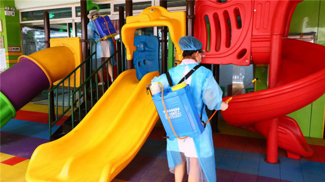 校园防疫,防控先行,孩子是祖国的花朵。当前,我国新冠肺炎疫情防控形势正在好转,各地学生也陆续开学。由于儿童自身抗风险能力较弱,在这个特殊时期,为保障孩子们以最好的状态迎接新学期,6月8日上午,山西天使儿童公益圆梦驿站携手太原天使儿童医院共同发起了“防疫护幼”公益活动,志愿者们来到“爱丫丫亲幼乐园”开展了晨检、日间巡查及消毒杀菌工作。