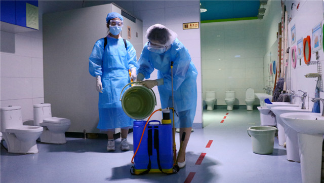 上午10点,太原天使儿童医院院领导带领志愿者们,用专业消毒设备对幼儿园的户外场地和室内各区域进行全面消毒,严格按照卫生消杀管理的标准规范操作,对教课室、办公室、各功能室、会议室、走廊等师生活动场所,进行了全面细致的消毒杀菌,并对门卫室、值班室、门把手、楼道、楼梯扶手、洗手池等重点区域实施重复消毒,通过地毯式工作,确保全方位消杀到位,不放过任何一个死角,实实在在为广大学生们的健康安全保驾护航。