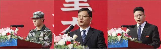 教师代表、应用科学学院教师李传亮寄语全体新生:要扣好人生第一粒扣子,要脚踏实地、实干兴业,要培育团结互助、无私奉献的团队精神,祝愿同学们在科大校园里,浇灌出美丽的花朵。在校学生代表、机械工程学院学生李明洋,2020级新生代表、计算机科学与技术学院王诗雨奇分别在典礼上发言。