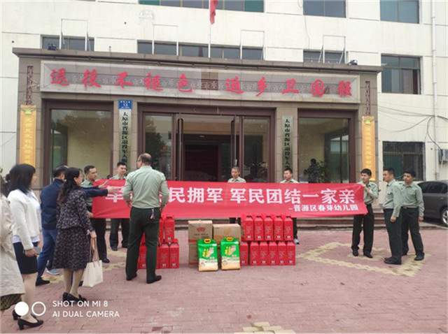 进区走访中,晋源区春芽幼儿园支部沈书记、教学园长王园长、安全园长冯园长、后勤部朱主任一同来到晋源区退役军人事务管理局,代表全园教师向军人们致以节日的祝贺,向现役军人致以最崇高的敬意,感谢他们为保卫国家、保卫人民做出的贡献,并将党和政府的温暖送到他们心中。