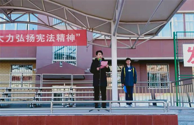 第一项由主持人郑光甫宣布活动开始。第二项国旗班入场。第三项举行升旗仪式。第四项由校党总支副书记王彦飞带领学生诵读宪法条例,使该校学生对我国宪法有了更深刻的认识,增强了学生们遵法、守法、维法、用法的意识。第五项播放歌曲《宪法伴我们成长》。