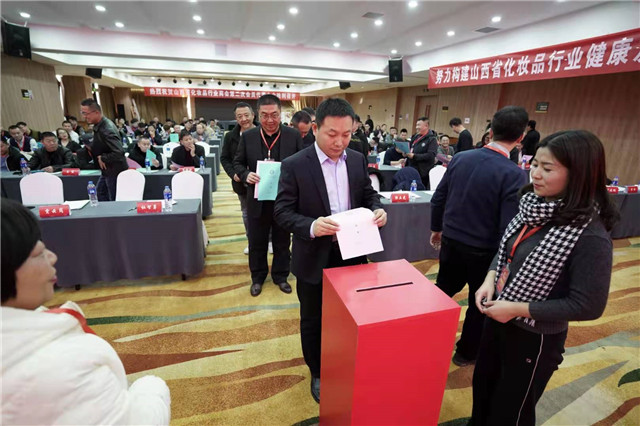 同时通过无记名投票方式选举产生了山西省化妆品行业商会第二届理事会领导班子成员及第一届监事会监事长。杜智勇全票当选为第二届理事会会长,贾云岗当选执行会长,李林平当选监事长,郭立光当选秘书长。选举完成后,新一届领导班子成员举行了集体宣誓仪式。