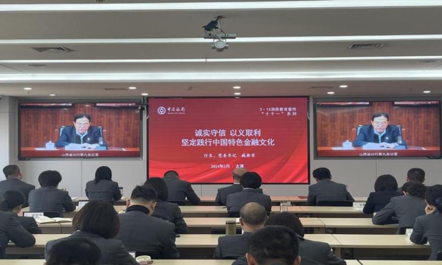 3月11日,中国银行临汾市分行组织落实3.15消保教育宣传“十个一”系列,参加中国银行山西省分行以“诚实守信、以义取利、坚定践行中国特色金融文化”为主题的专题讲座。