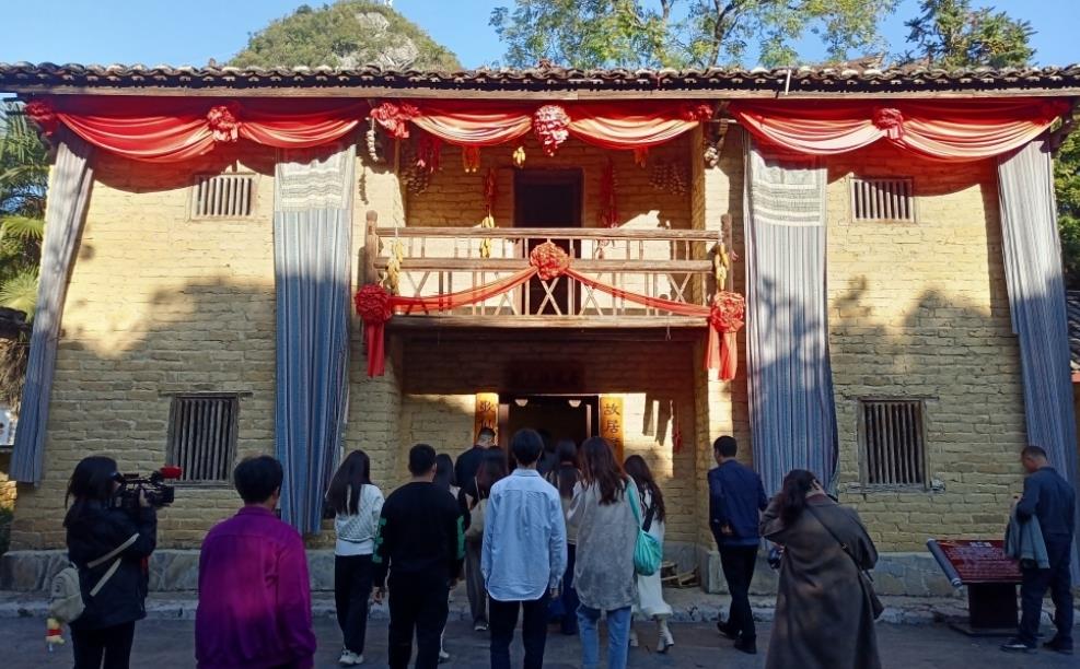 记者们打卡刘三姐故居。记者 周隆富 摄