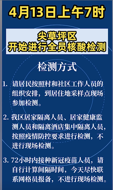 黄河新闻网讯(记者周昱丽)4月12日,太原“尖草坪发布”官方抖音号发布通告,4月13日7时开始,太原市尖草坪区开展新冠病毒核酸检测。