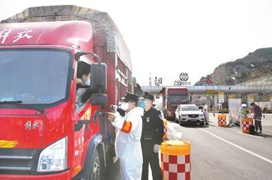 我市严格落实“外防输入、内防反弹”疫情防控策略,加强交通卡口“第一落点”管理,绝不漏掉一车一人,筑牢安全防线。图为4月8日阳泉西高速口检查站执勤人员对进入我市的车辆和驾乘人员逐一进行“三码”查验工作。刘 胜摄