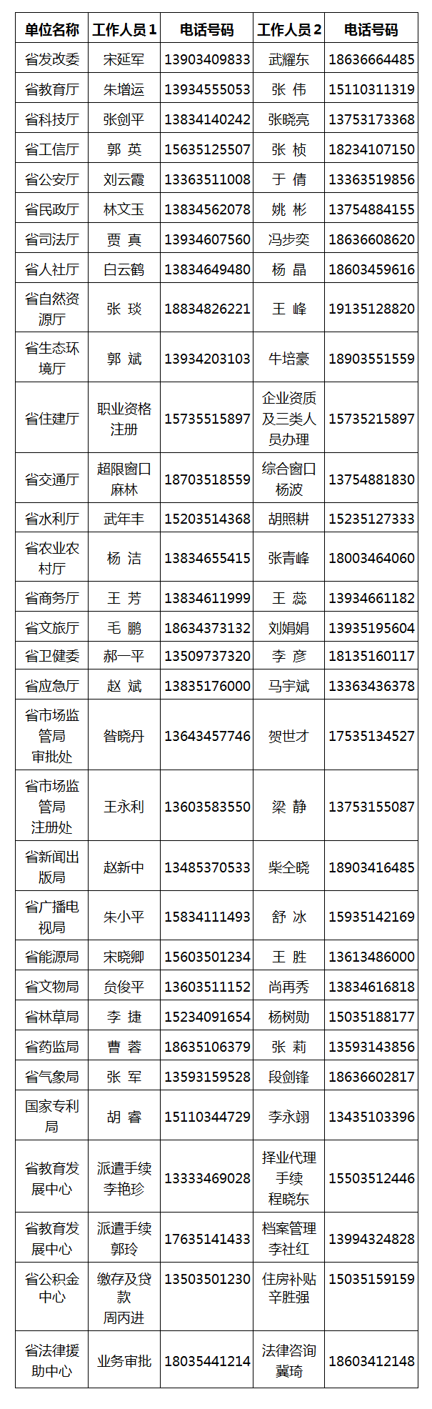 行政审批窗口单位对外公布工作人员名单及电话