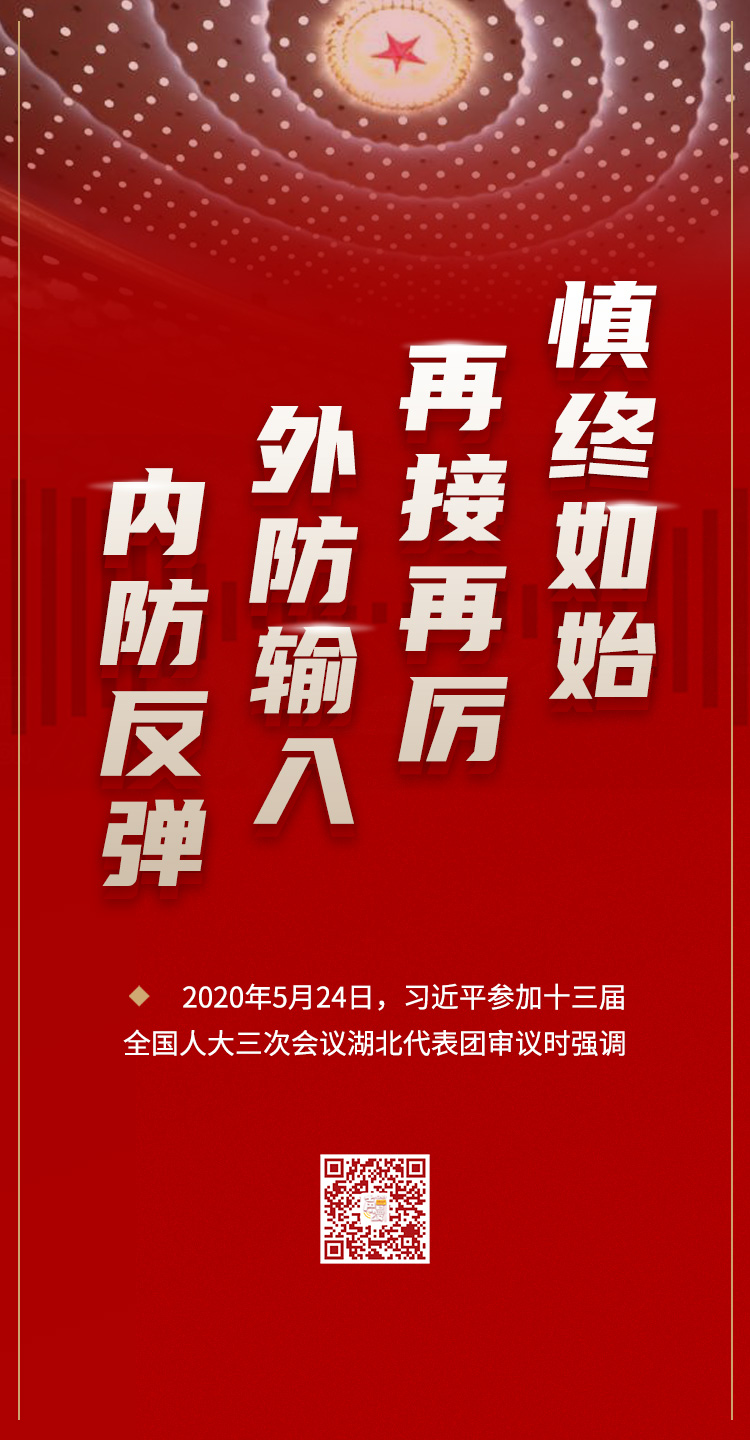 习近平强调,当前,境外疫情扩散蔓延势头仍然没有得到有效遏制,国内个别地区聚集性疫情仍然存在,湖北有时还出现散发零星确诊病例,无症状感染者每天还有新增。针尖大的窟窿能漏过斗大的风。要时刻绷紧疫情防控这根弦,慎终如始、再接再厉,持续抓好外防输入、内防反弹工作,决不能让来之不易的疫情防控成果前功尽弃。