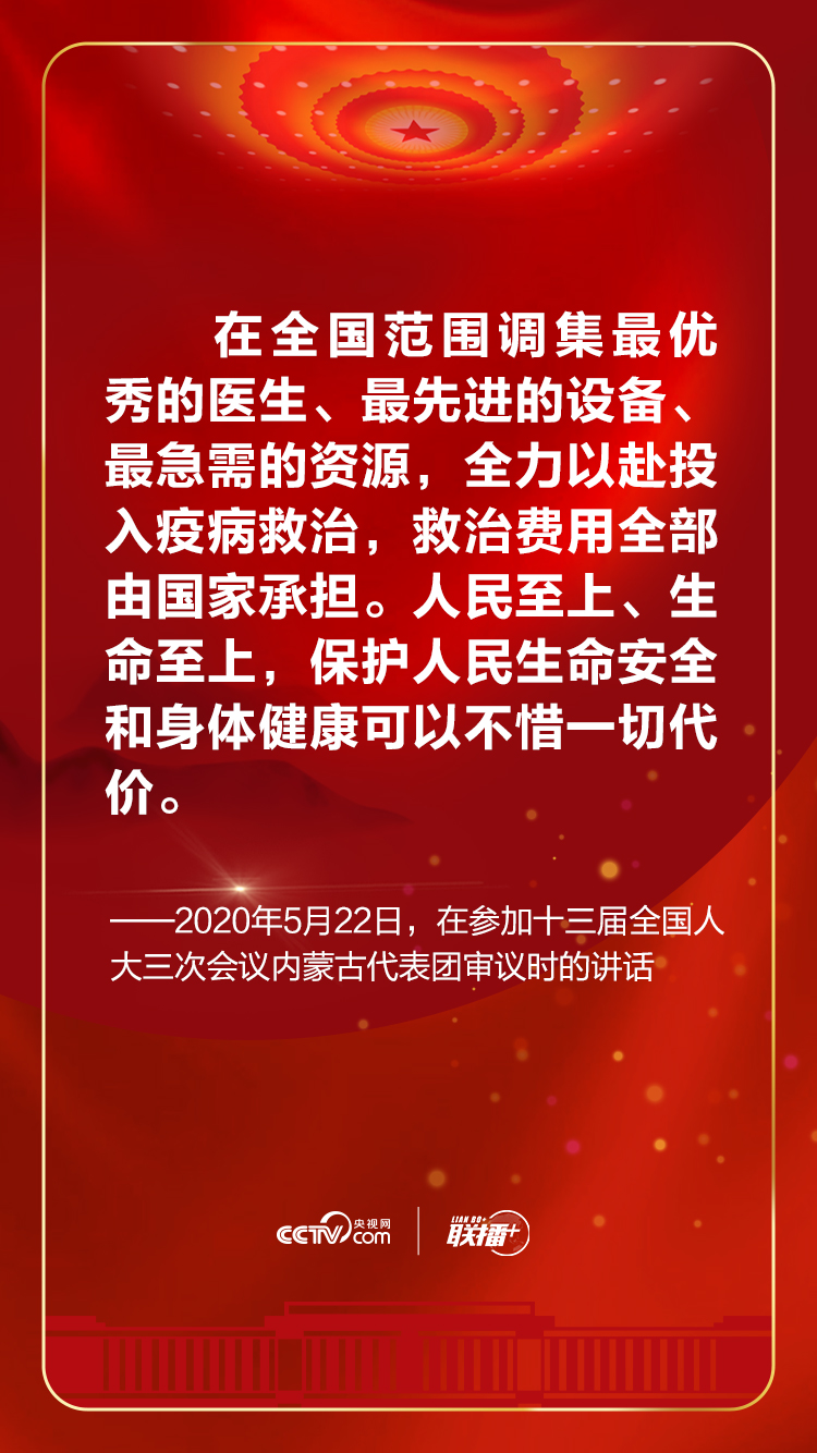 在这次特殊背景下召开的全国两会上,习近平一句句坚持“人民至上”“生命至上”的话语暖人心扉、贴近民心。央视网《联播+》特梳理,与您一起感受总书记的人民情怀。