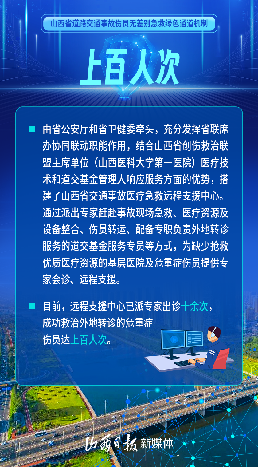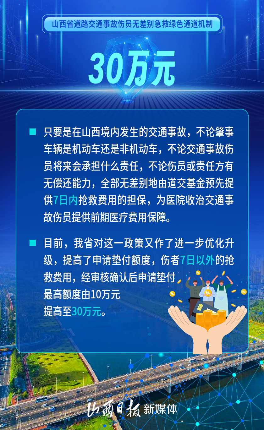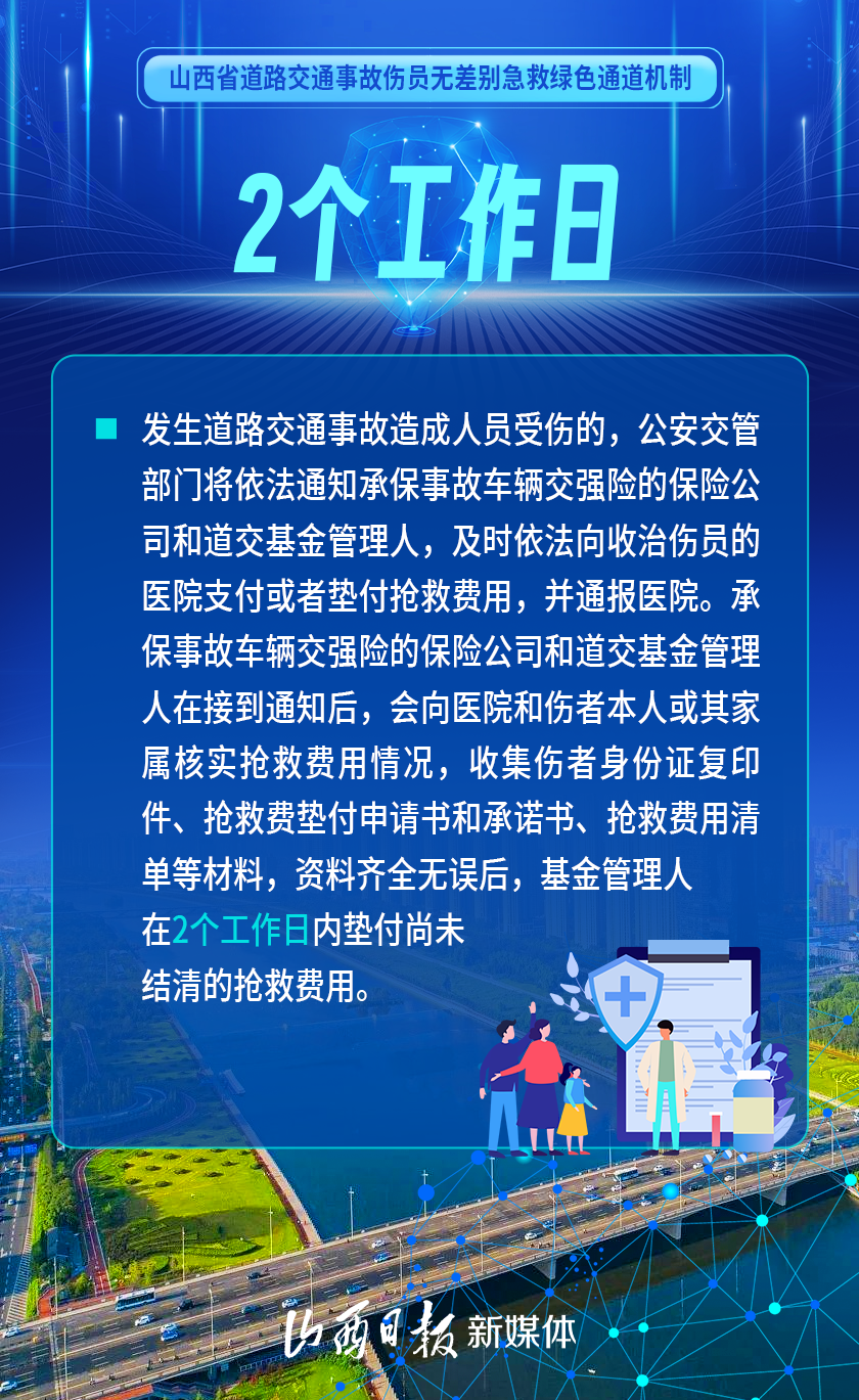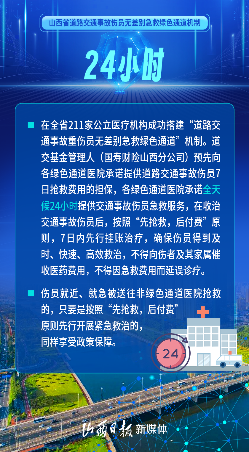 一组数字海报,了解山西省道路交通事故伤员无差别急救绿色通道机制。