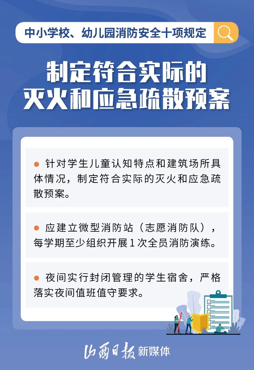 为加强中小学校、幼儿园消防安全管理,近日,教育部、国家消防救援局研究制定了《中小学校、幼儿园消防安全十项规定》,具体规定内容如下。
