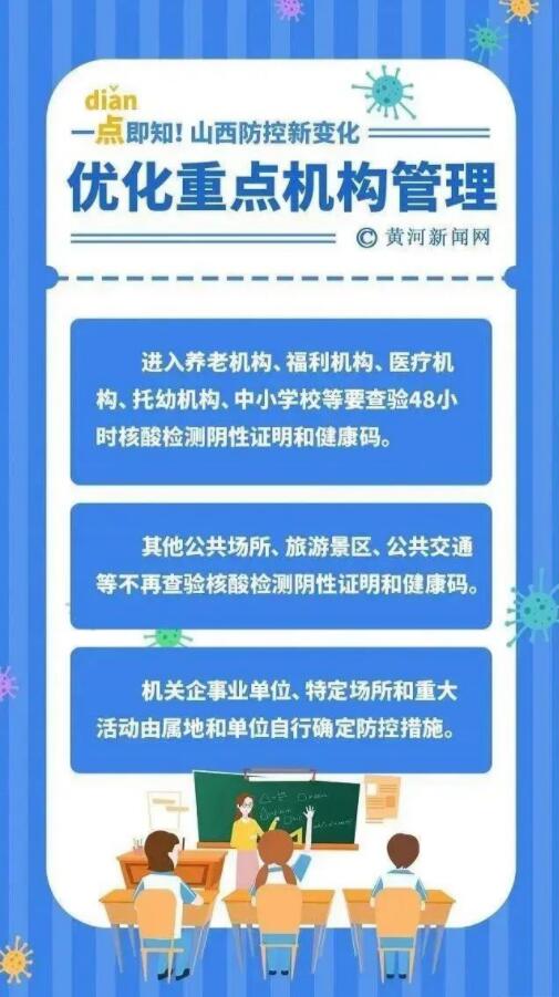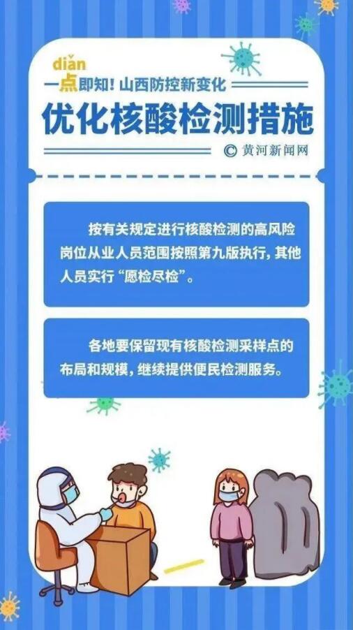 国家“新十条”公布后,山西及时响应,于12月8日印发《关于落实进一步优化新冠肺炎疫情防控措施的意见》,对市民关心关注的核酸检测、查码验码等事项进一步优化调整。到底有哪些不一样,一起点点看吧。