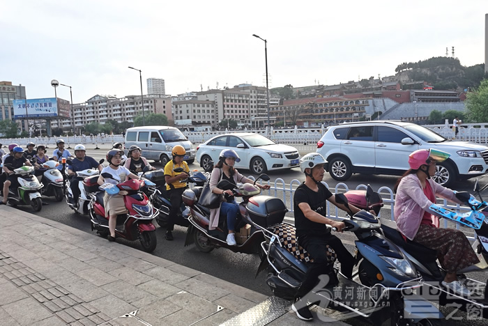 7月2日,柳林县街头,摩托车、电动车驾驶员佩戴安全头盔出行。据悉,该县城区安全头盔佩戴率达到90%以上。