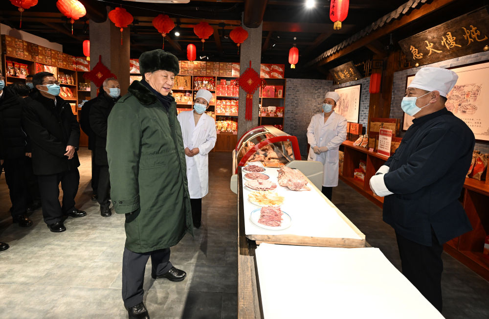 在平遥牛肉店、推光漆器店、东湖老醋坊,习近平总书记一边感受着浓郁的年味,一边思考着保护好这些文化瑰宝,把富有民族特色的传统文化产业发扬光大、推向世界。