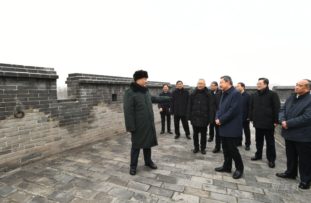 ↑这是27日上午,习近平来到平遥古城,登上城墙考察。
