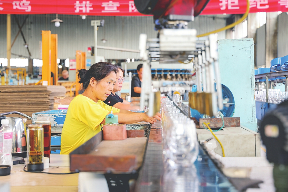 山西大华玻璃实业有限公司的质检员正在对玻璃杯进行质量检验。焦建超摄