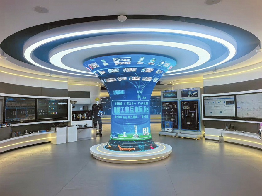 步入山西煤炭工业互联网展厅,一个“枝繁叶茂”的蓝色树状电子屏矗立中央,数据流在“枝丫”间如星河般奔涌流转。屏体下方,煤矿采、掘、机、运、通等生产场景一目了然;中层是由应用商店、算力中心、矿山AI大模型等软硬件构成的煤炭工业互联网平台核心架构;顶端则清晰标注着智能化产品开发商、科研院所、高等院校等生态伙伴名称——这一微缩景观生动勾勒出山西煤炭工业互联网平台的完整生态图谱。