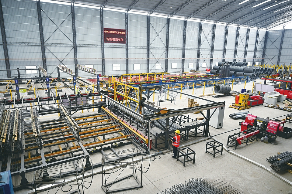 7月27日,中铁三局集团五台制梁场智能钢筋车间内,工作人员正在生产钢筋。据了解,该制梁场负责雄忻高铁跨五台县外环特大桥、五台站特大桥等桥梁的简支箱梁预制任务,共计338孔。