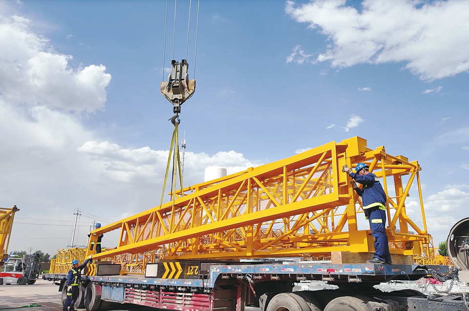 晋塔塔式起重机标准节正在进行发运前的打包、检查工作。王三敏摄