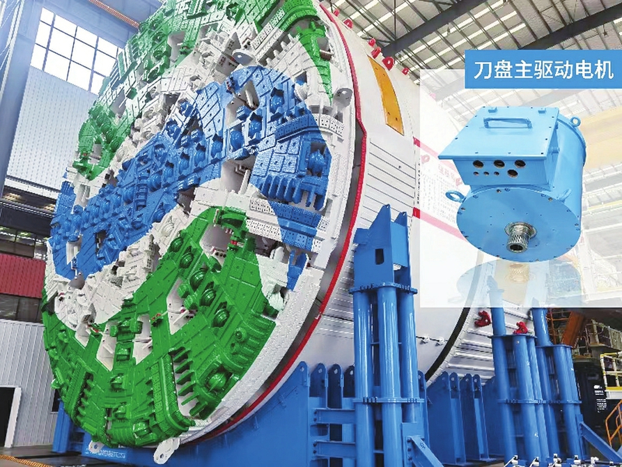 搭载中车永济电机公司自主研制的刀盘主驱动电机的“强基号”盾构机。本报通讯员摄