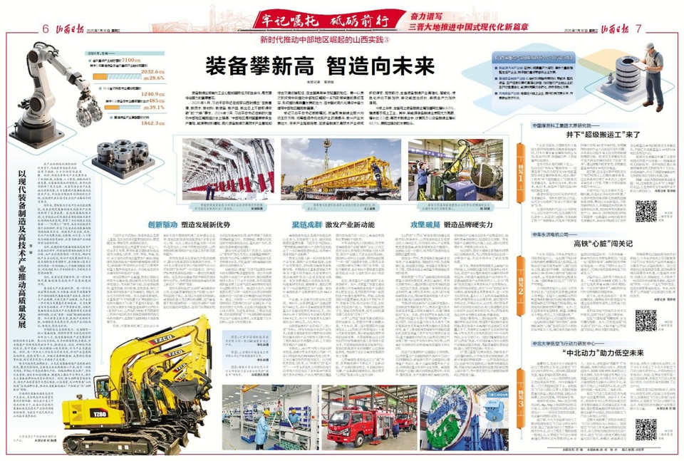 从“国之重器”的使命担当,到新质生产力的蓬勃涌现;从传统优势的智能焕新,到新兴赛道的聚链成群……山西装备制造业正以创新为刃攻坚破局,以集群为势锻造品牌,在建设特色高端装备制造强省的新征程上阔步前行,为中国式现代化贡献强劲澎湃的山西装备力量。