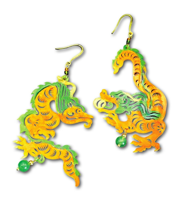 汾阳太符观琉璃浮雕“二龙戏珠”耳饰。