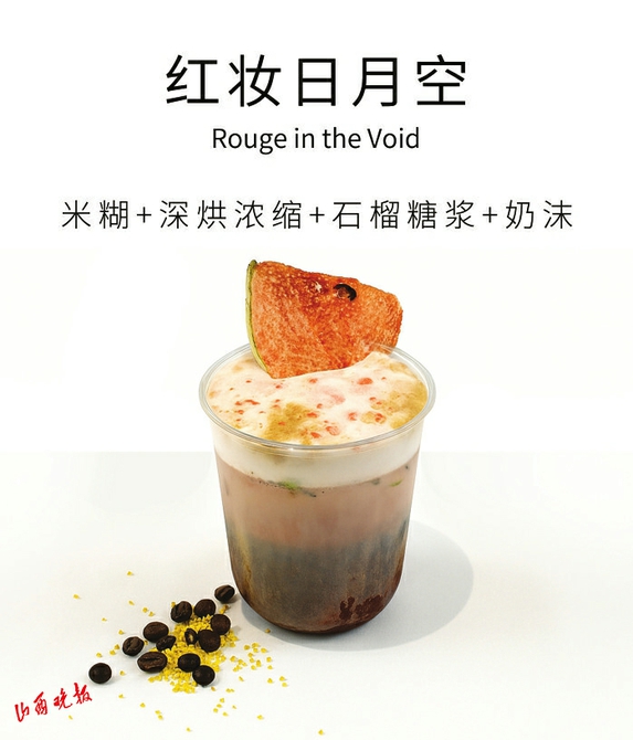 现场有10款特别打造的咖啡饮品,光听名字,就足以感受到那股子晋味和晋韵。山西地域系列:汾河晨曦、鹳雀层云、盐湖镜萃、云冈石语、谷雾壶口;山西人物系列:红妆日月空、云长赤兔、去病黍饮;文博会特饮:小米+步枪、山河故人。