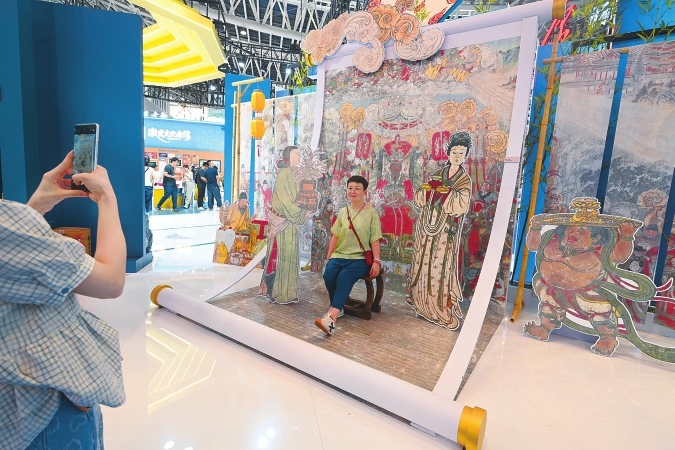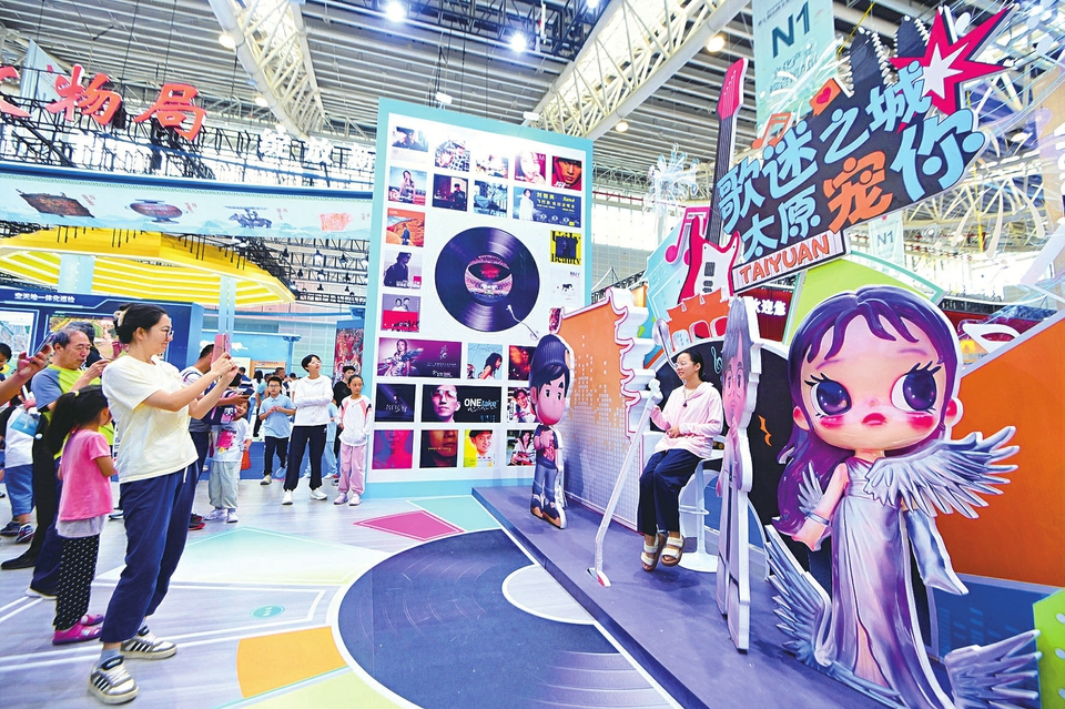 ②太原展区内,“歌迷之城,太原宠你”的展陈设计吸引了众多市民拍照打卡。本报记者赵夏雨摄