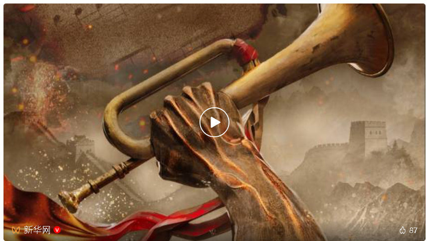有一种武器,叫音乐! 1939年诞生于延安窑洞中的 《黄河大合唱》 向全中国乃至全世界 发出了民族解放的时代强音 孕育于烽火硝烟中 激励亿万同胞 奋起抗争、救亡图存 抗战歌曲承载着血与火的记忆 激荡着中华儿女 百折不挠、坚忍不拔的必胜信念 黄河的咆哮怒吼 在一代代中国人心中回响 伟大抗战精神 为我们奋进新征程注入磅礴力量 雄伟的天安门 壮丽的广场 纪念中国人民抗日战争暨 世界反法西斯战争胜利80周年大会 万众瞩望 铭记苦难辉煌交织的抗战岁月 礼赞浴血奋战的民族脊梁 为了中华民族伟大复兴 为了人类和平崇高理想 我们风雨兼程 紧握历史的接力棒.