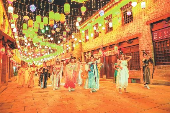 在古建保护利用上,郭峪村坚持“修旧如旧、活化利用”。投入3500万元对城墙实施修复建设并妥善安置周边居民;投入750万元完成东门广场建设及沿路亮化;投资300万元美化亮化村民住宅小区;投入500万元修缮石山庙沿线景观;投入400万元盘活闲置空地打造特色景观。同时,依托深厚的历史文化资源,打造进士第、孝友第等高端民宿,策划“灯光+演艺+美食+景点”夜游项目,推出“景阳小吃街”特色餐饮,让古老的村落焕发新生机。