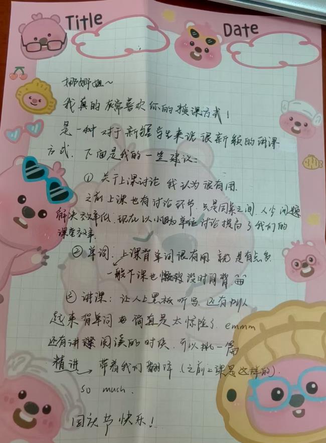 ▲学生们写给吕娜老师的信