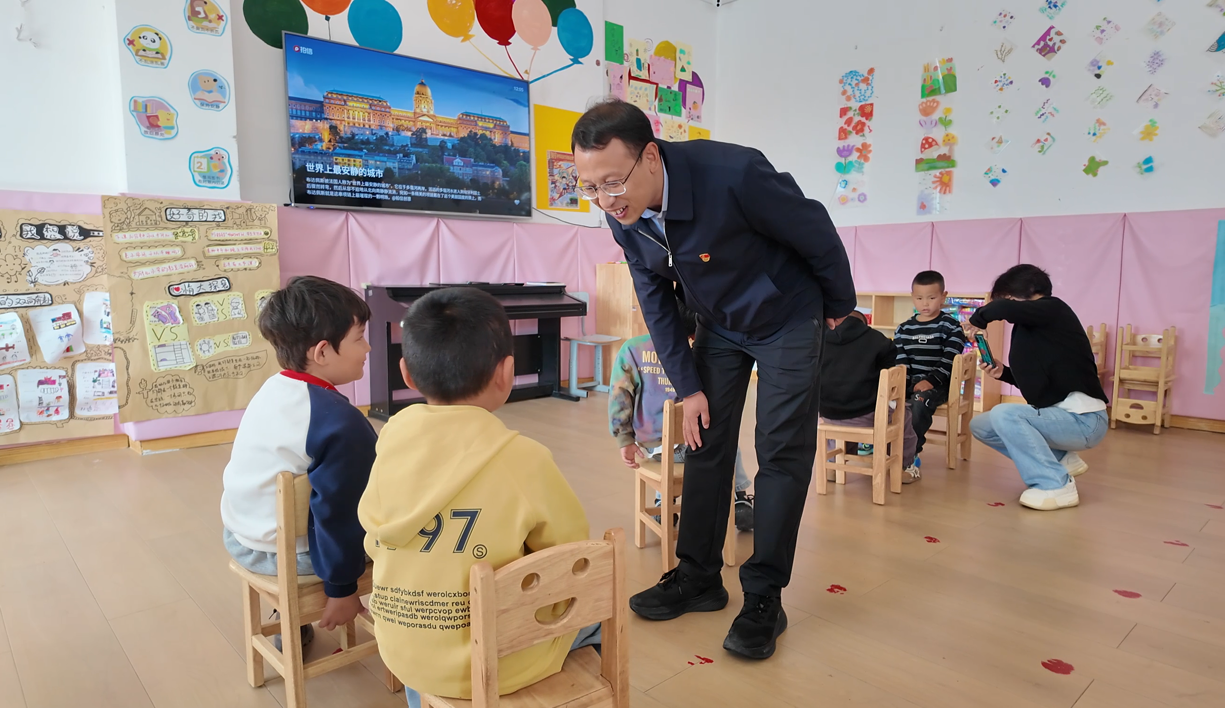 ▲张志涛来到幼儿园和小朋友们交流