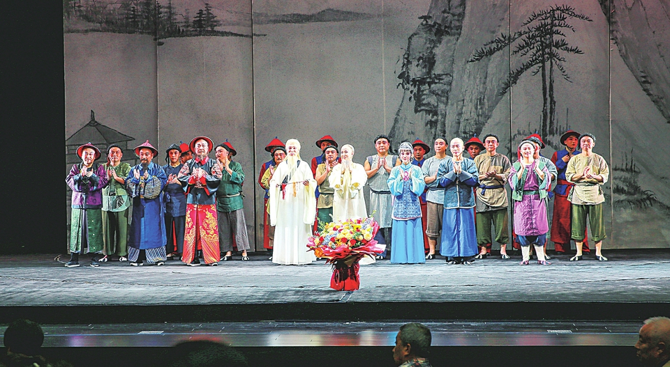 晋剧《于成龙》演职人员与观众见面。本报记者王昕摄