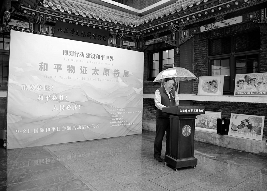 山西晚报·山河+讯(记者 白洁)9月17日,细雨中的晋商博物院见证了一场意义深远的和平倡议活动。由山西中华文化促进会、南京大学联合国教科文组织和平学教席、太原市红十字会、山西烽火抗战博物馆等六家单位联合主办的“即刻行动,建设和平世界”和平物证太原特展启动仪式庄严举行。