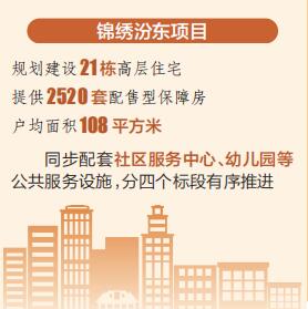 作为太原市重点民生工程,锦绣汾东项目规划建设21栋高层住宅,提供2520套配售型保障房,户均面积108平方米;同步配套社区服务中心、幼儿园等公共服务设施,分四个标段有序推进。项目建成后,将显著改善区域住房条件,有效缓解中低收入群体住房压力,为太原市构建房地产发展新模式注入新动能。